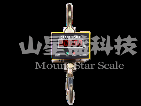 將電子吊秤的吊環掛在起重機的吊鉤上,當電子吊秤的吊鉤上掛上物品后,在秤體內的傳感器受到拉力產生變形,傳感器內的電流發生變化,然后這個變化的電流通過A/D轉換,再通過發射機將無線電信號發出,根據國家無線電管理委員會的規定,電子吊秤一般是用230MHZ和450MHZ發出的,接收機接收到信號以后傳輸給儀表,然后經過儀表的轉換計算,最終顯示出來。